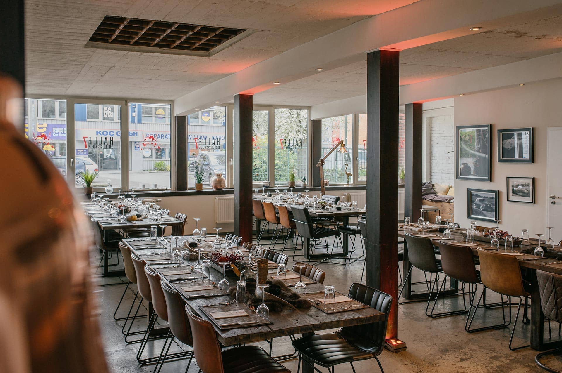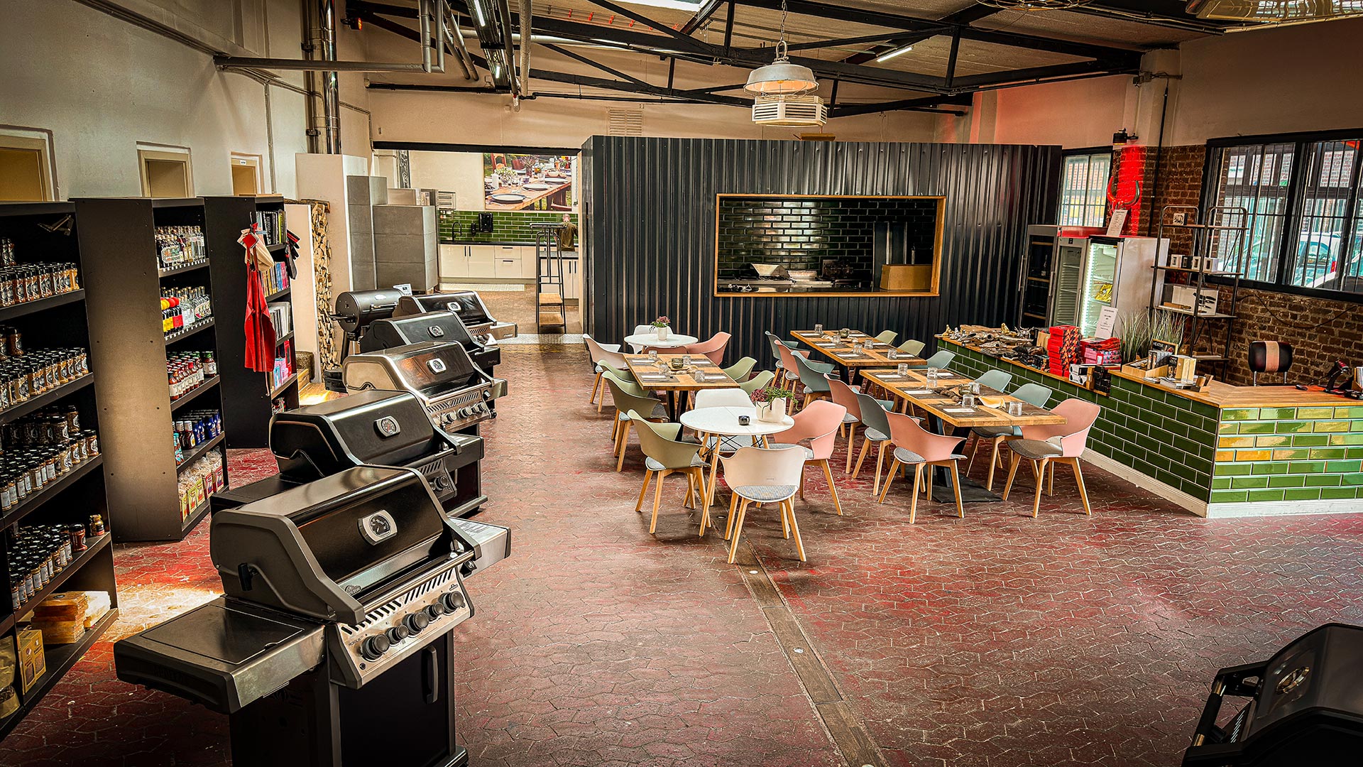 Erleben Sie unsere Grillkurse in unseren großzügig umgebauten Fabrikhallen mit Industrie-Charme: Die Grillschule in Halle 25 bietet Platz für 100-150 Grillbegeisterte. In Halle 7 haben bis zu 60 Gillfans Platz. Halle 22 begrüßt bis zu 40 Gäste.