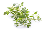 ThymianVerwendung in der Küche: Fisch, Gemüse, Geflügel, Käse, Marinaden, Fonds, Suppe, geschmortes hilft bei: Darmentzündungen, Mandelentzündungen, Verdauungsproblemen |
